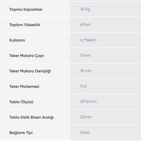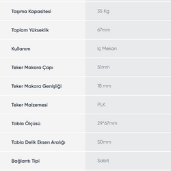Sabit, Orta Taşıma Kapasiteli Şeffaf Teker