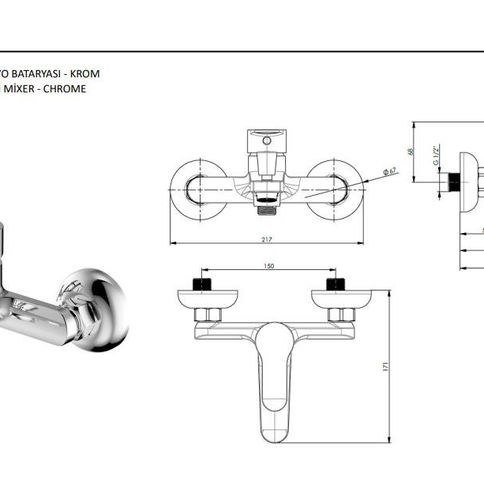 El duşu bağlantısı G 1/2" dir.